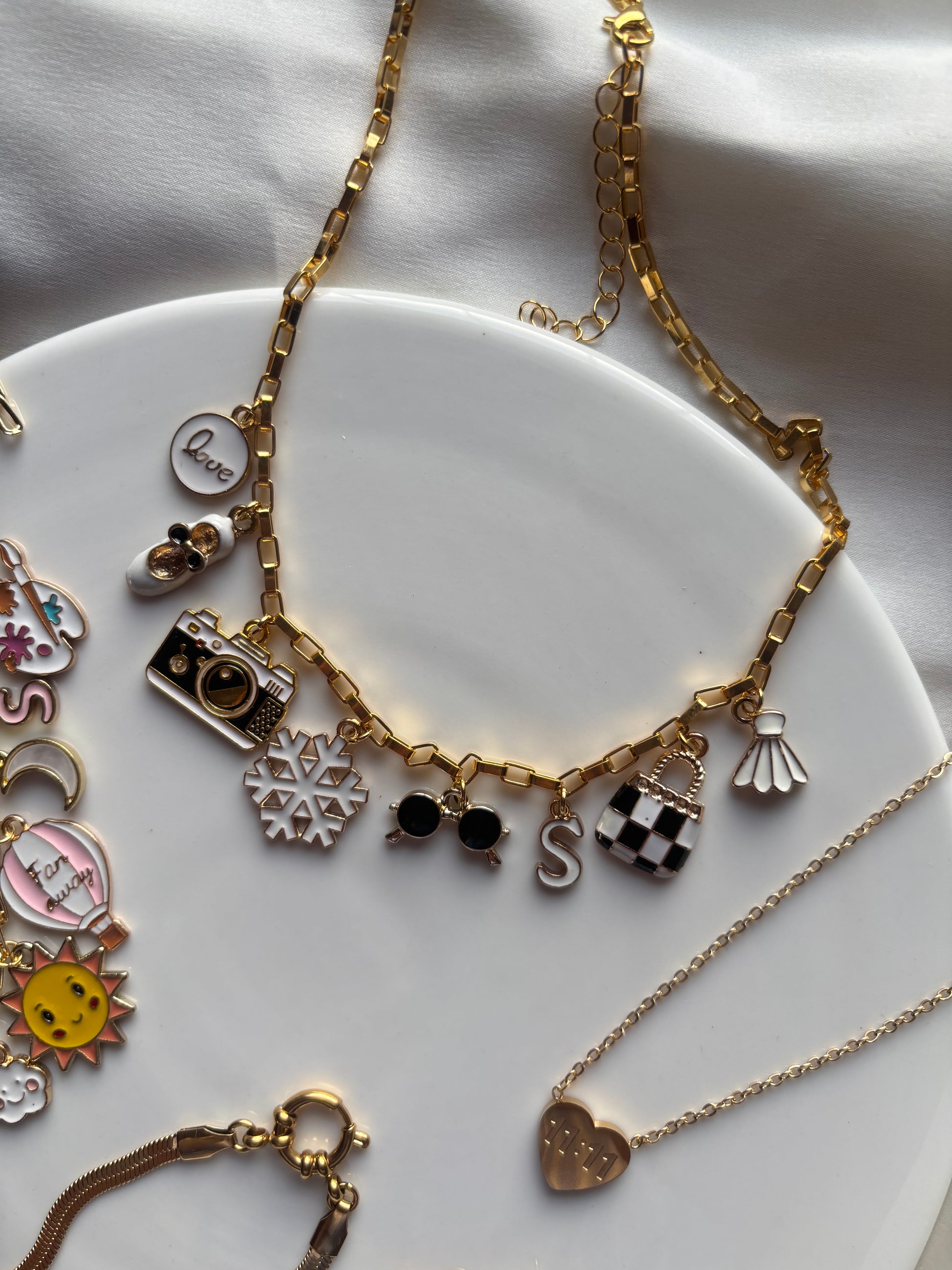 Choose from our versatile collection of jewelry bases including charm bracelets, necklaces, lapel pins, keychains, denim chains, and bag chains. Each base serves as the perfect foundation for your personalized piece.